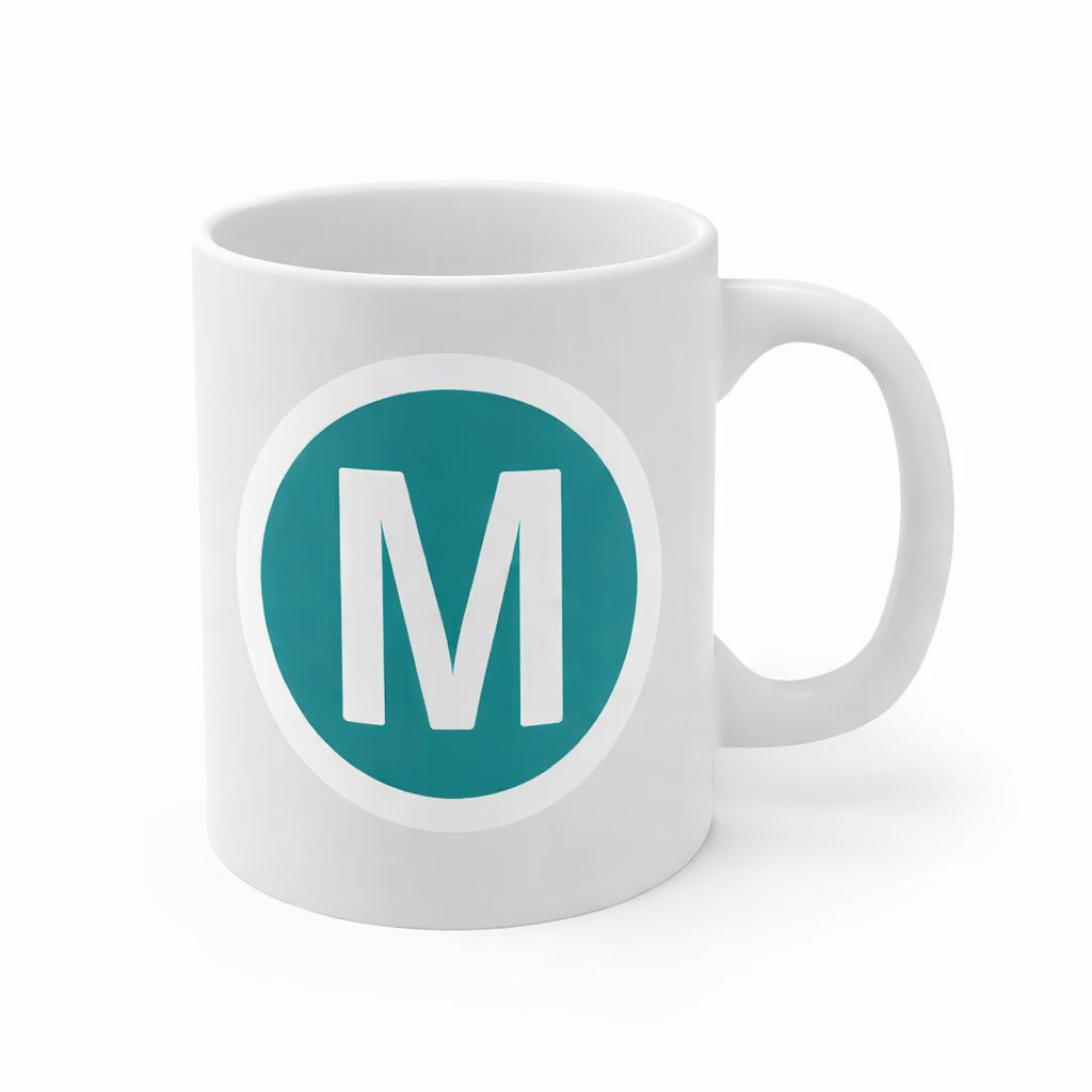 11oz coffee mug with the TfNSW teal metro icon
